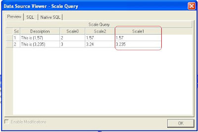 In my experience, the DBA used SQL Server float data type. Unfortunately, when you define the column data type as float, SQL automatically sets precision property to 53 and scale property to 0. Scale property set to 0 doesn't mean that the float number is truncated or rounded when stored in the database, but when the float is queried from an external application (Transformer in our case), and the result is used by another application (Cognos Analysis), the final result is rounded: there is a loss of precision somewhere in the process as you'll see in the following screenshots.